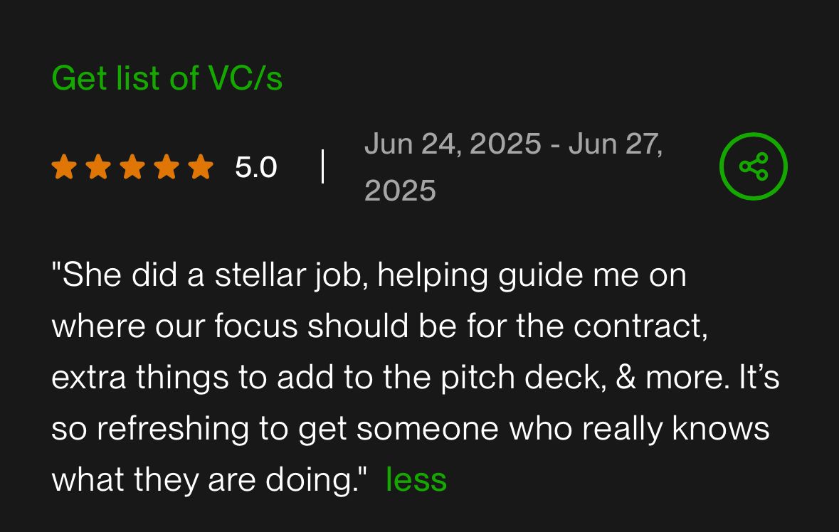 What I valued most was their ability to map investors specifically for our sector. It saved us weeks of wasted outreach.